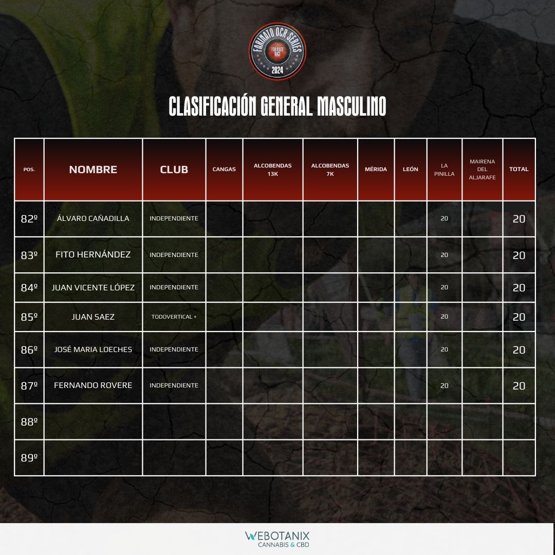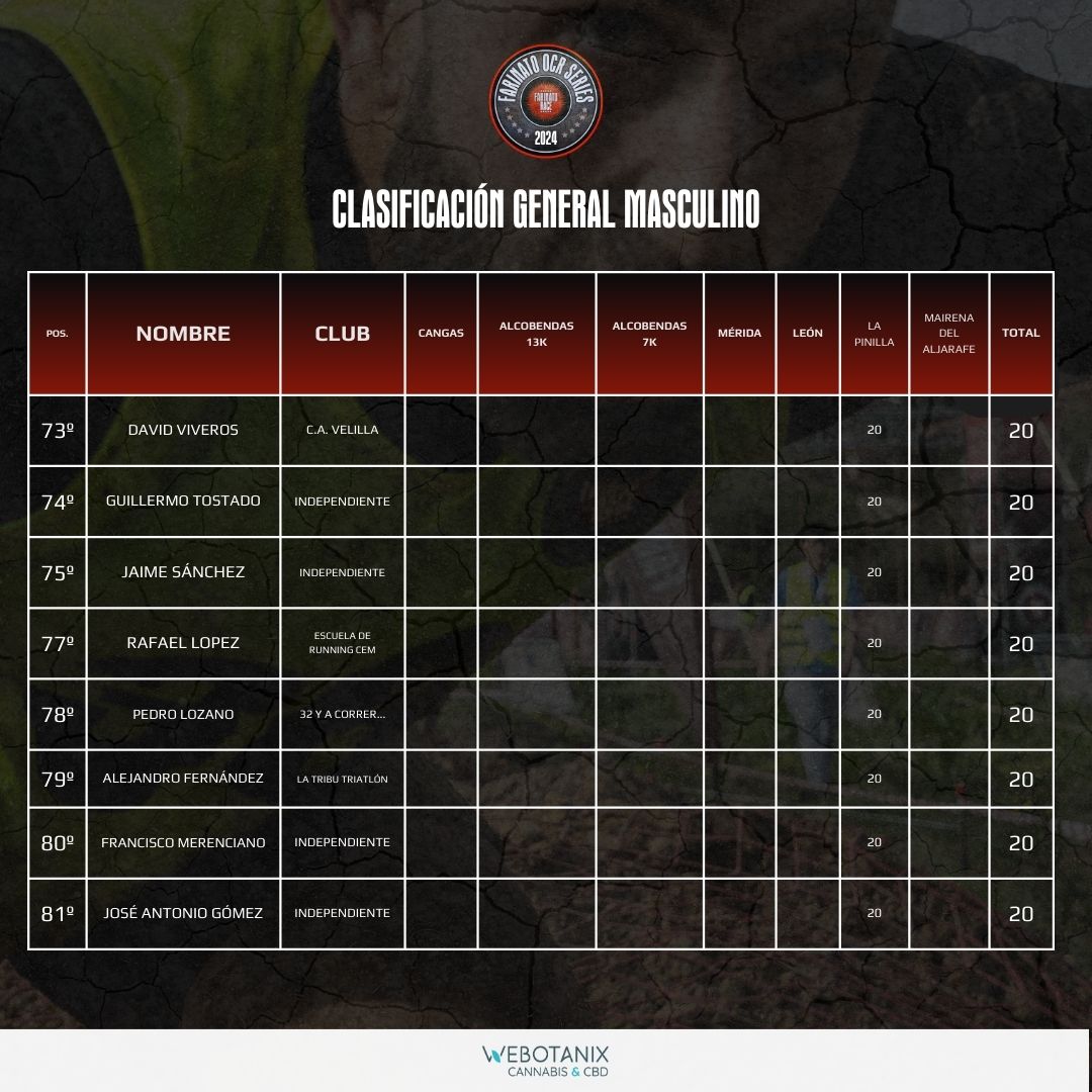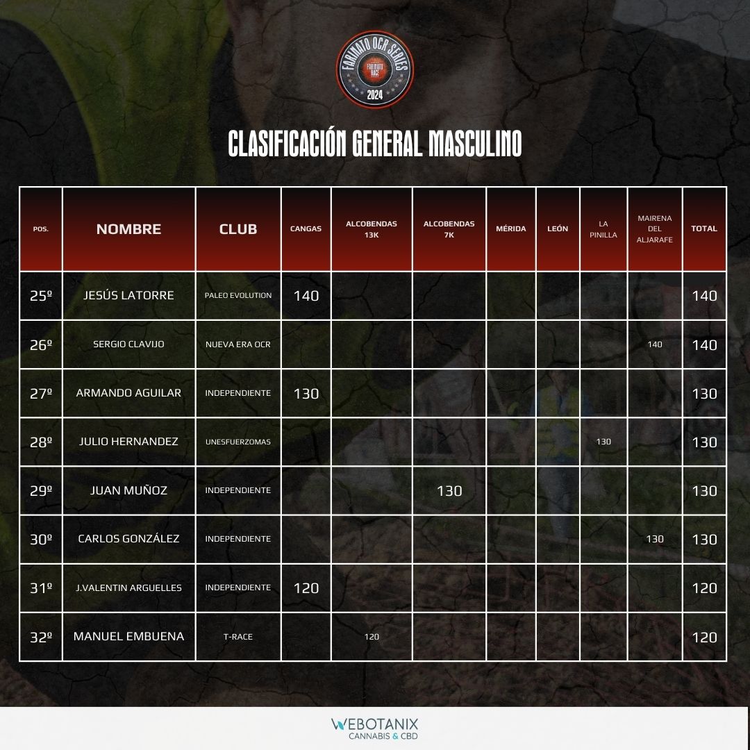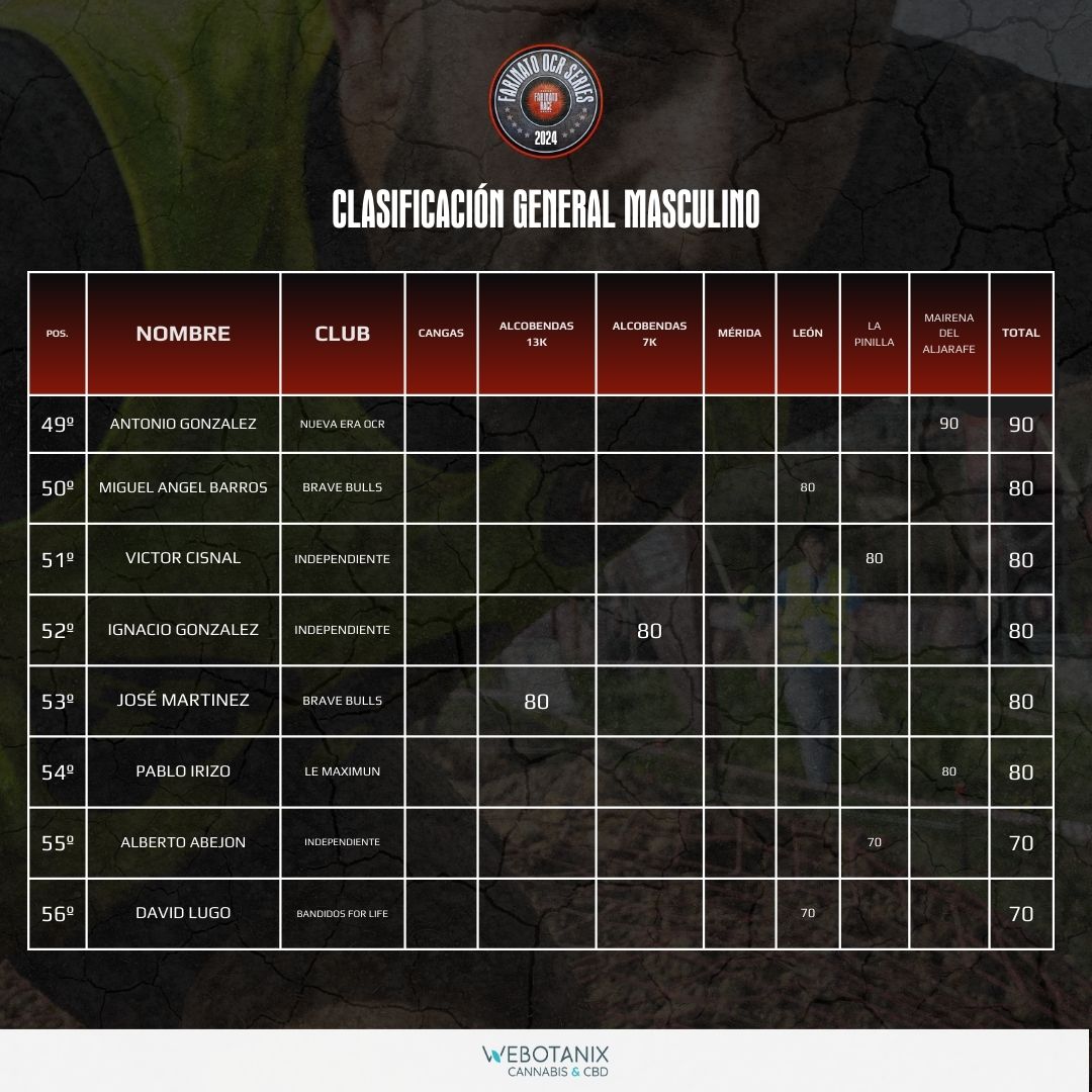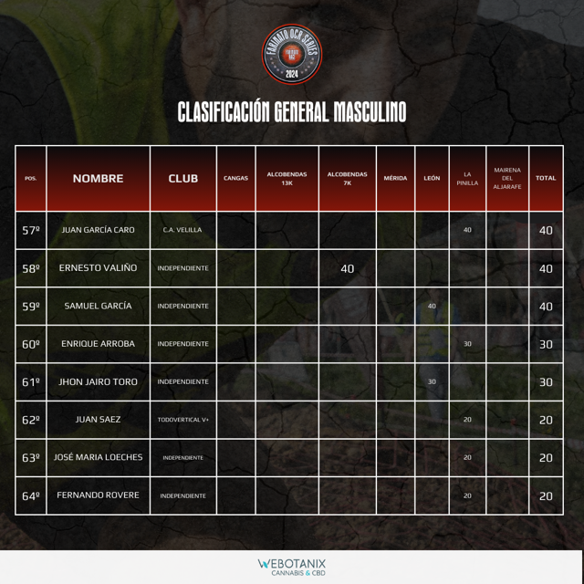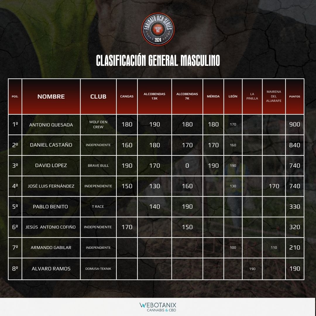 CLASIFICACIÓN GENERAL MASCULINO OCR SERIES 2024